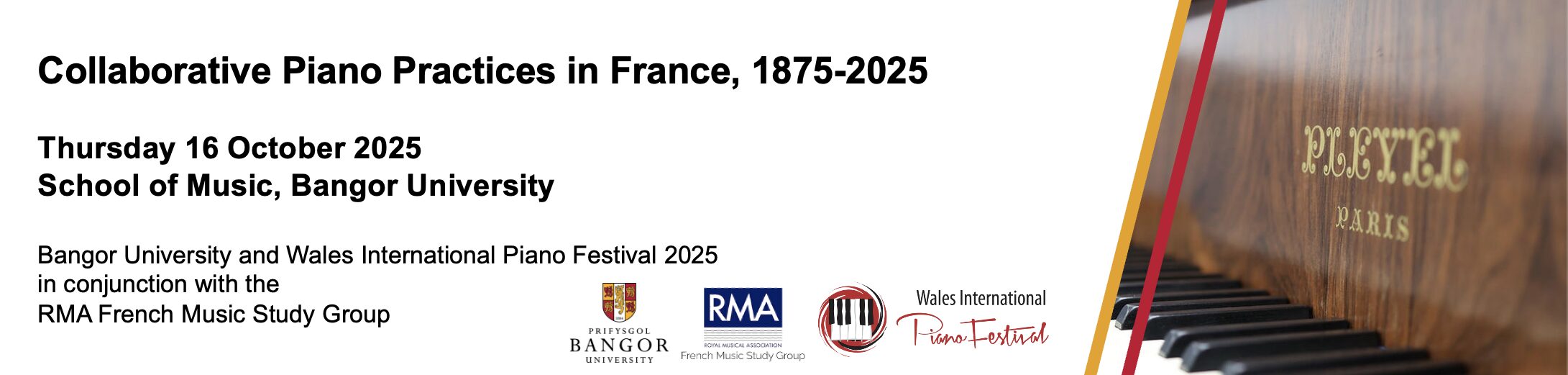 The Wales International Piano Festival in conjunction with Bangor University and the Royal Musical Association warmly invites you to a day of talks, presentations and performances exploring the role of the piano in French instrumental and vocal chamber music between 1875-2025.